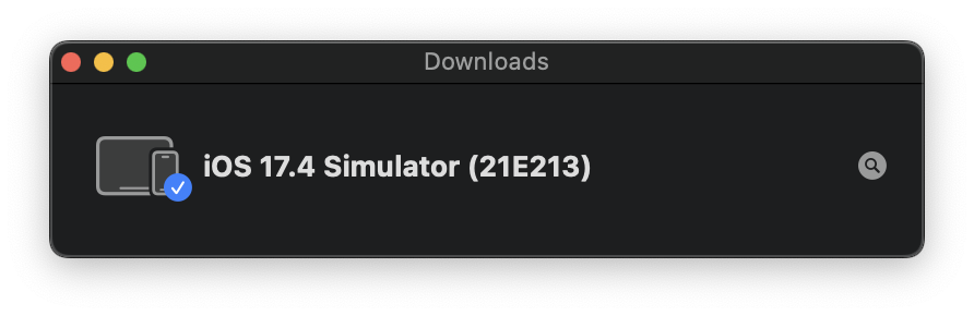 Xcode 실행 -> 우측 상단 Xcode -> Settings... -> Platforms -> iOS 17.4 Get 진행