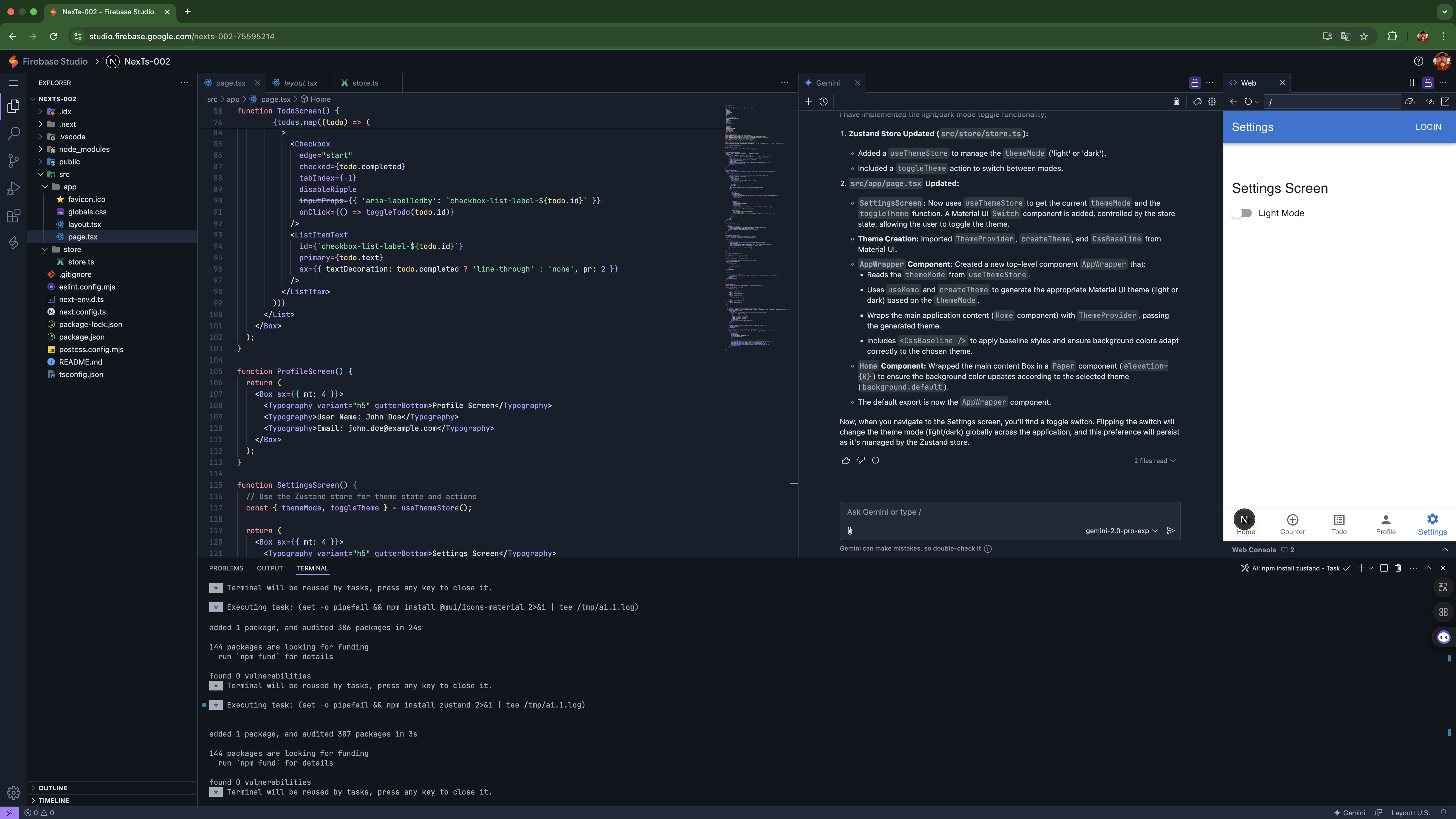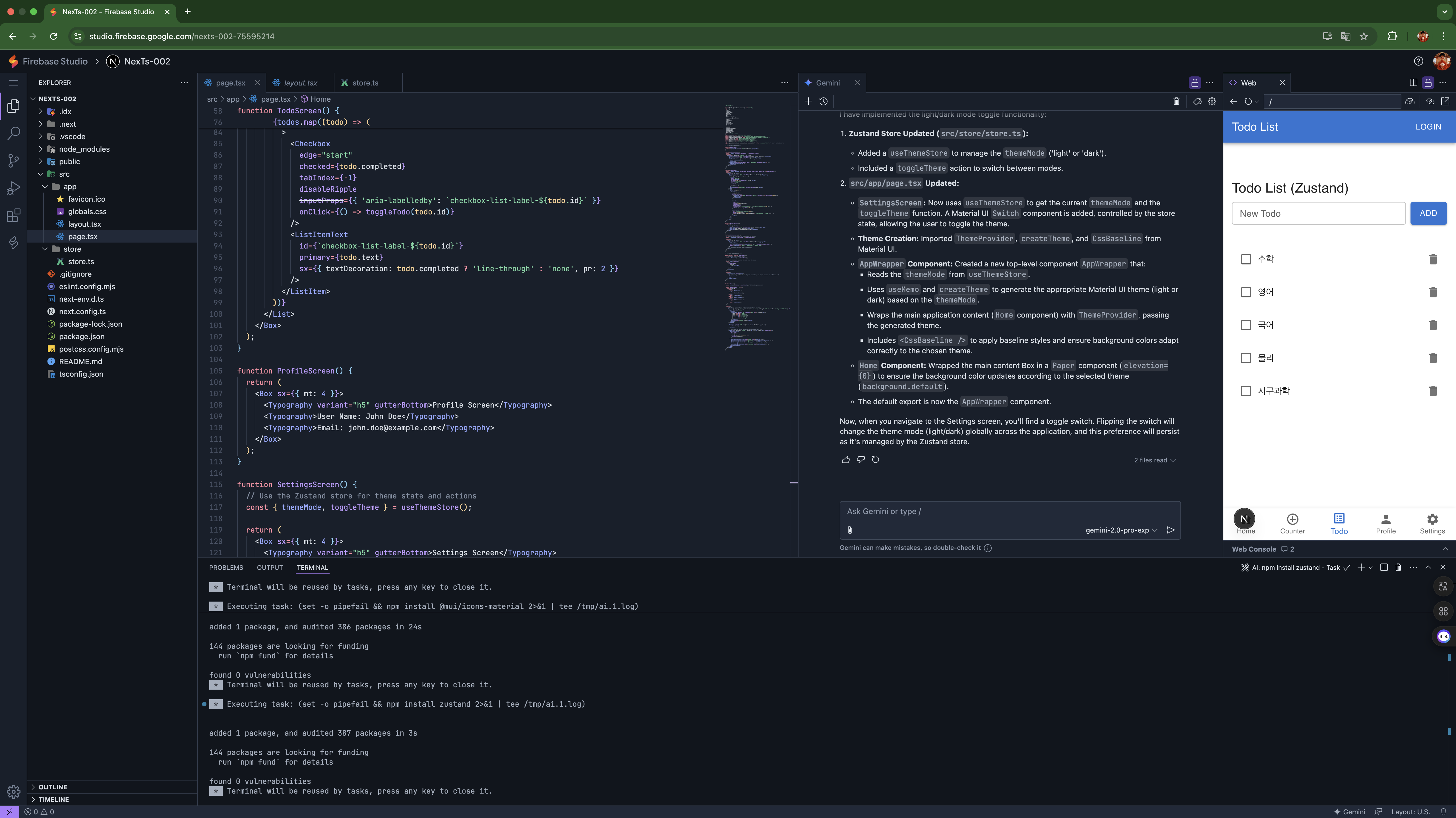 counter 화면과 todo 화면에서 사용되는 데이터들을 zustand로 구현해줘.