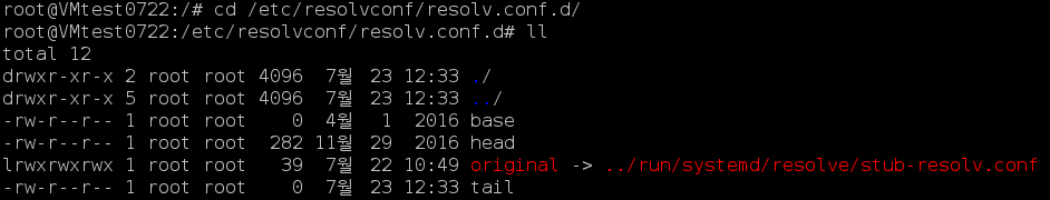아래와 같이 resolvconf 디렉토리와 그 아래 파일들이 생성된 것을 볼 수 있다.