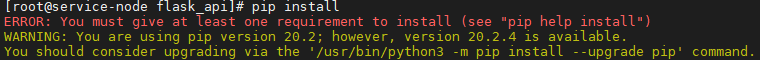 WARNING: You are using pip version 20.2; however, version 20.2.4 is available.