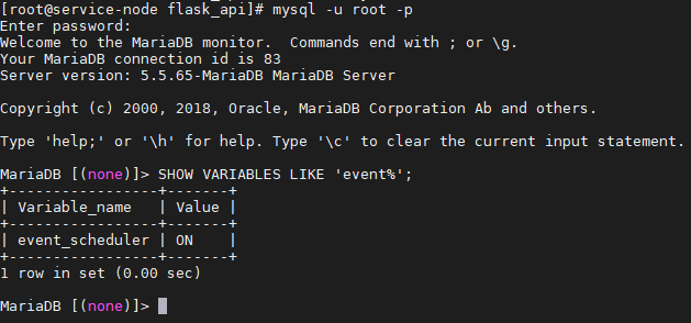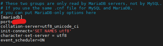 리눅스 서버에서 해당 설정 문구를 본 파일에 입력하여 MariaDB를 재가동하더라도 이벤트 스케줄러 ON/OFF를 해당 설정으로 유지시키도록 할 수 있습니다.