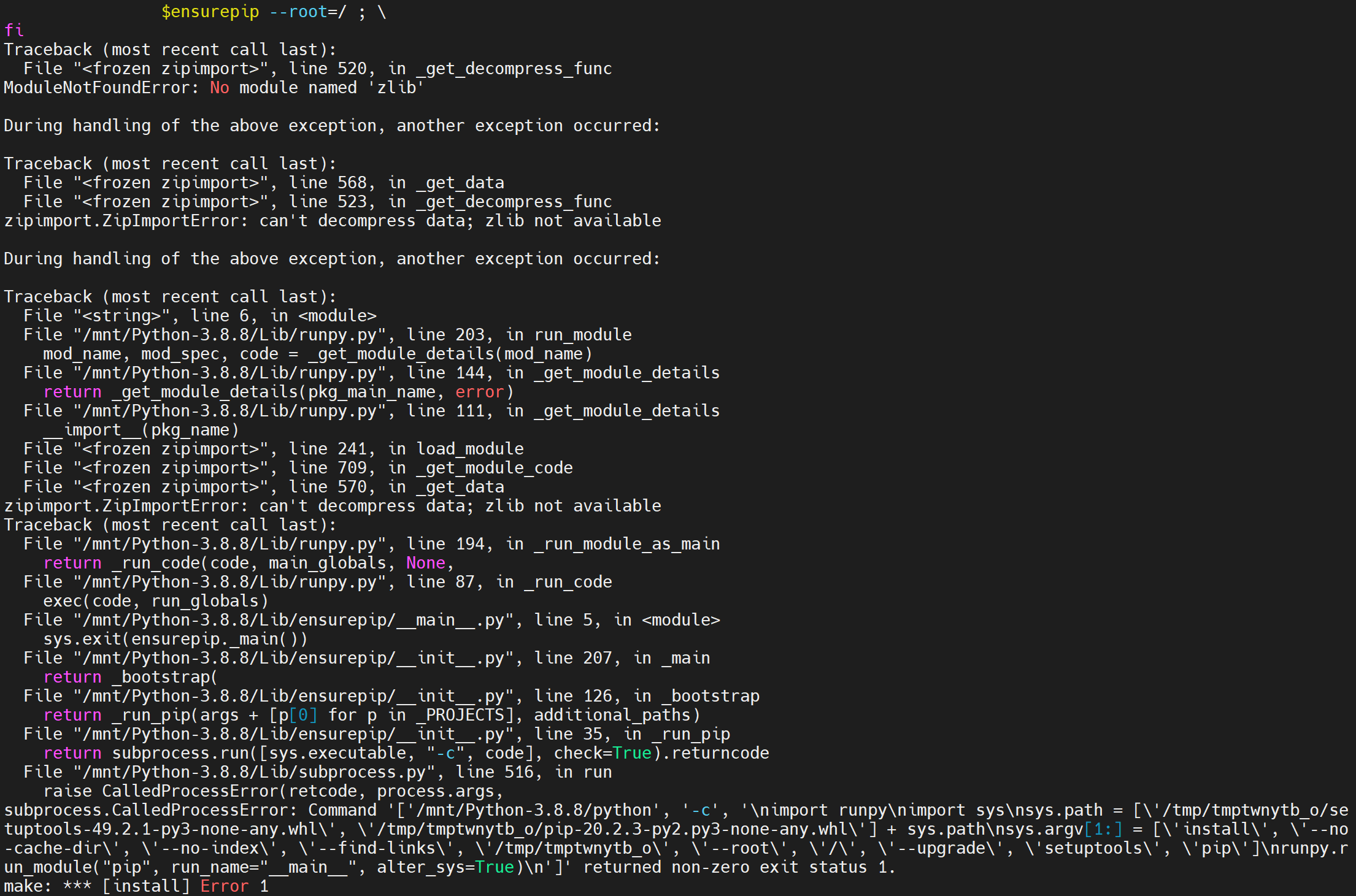 ModuleNotFoundError: No module named 'zlib'