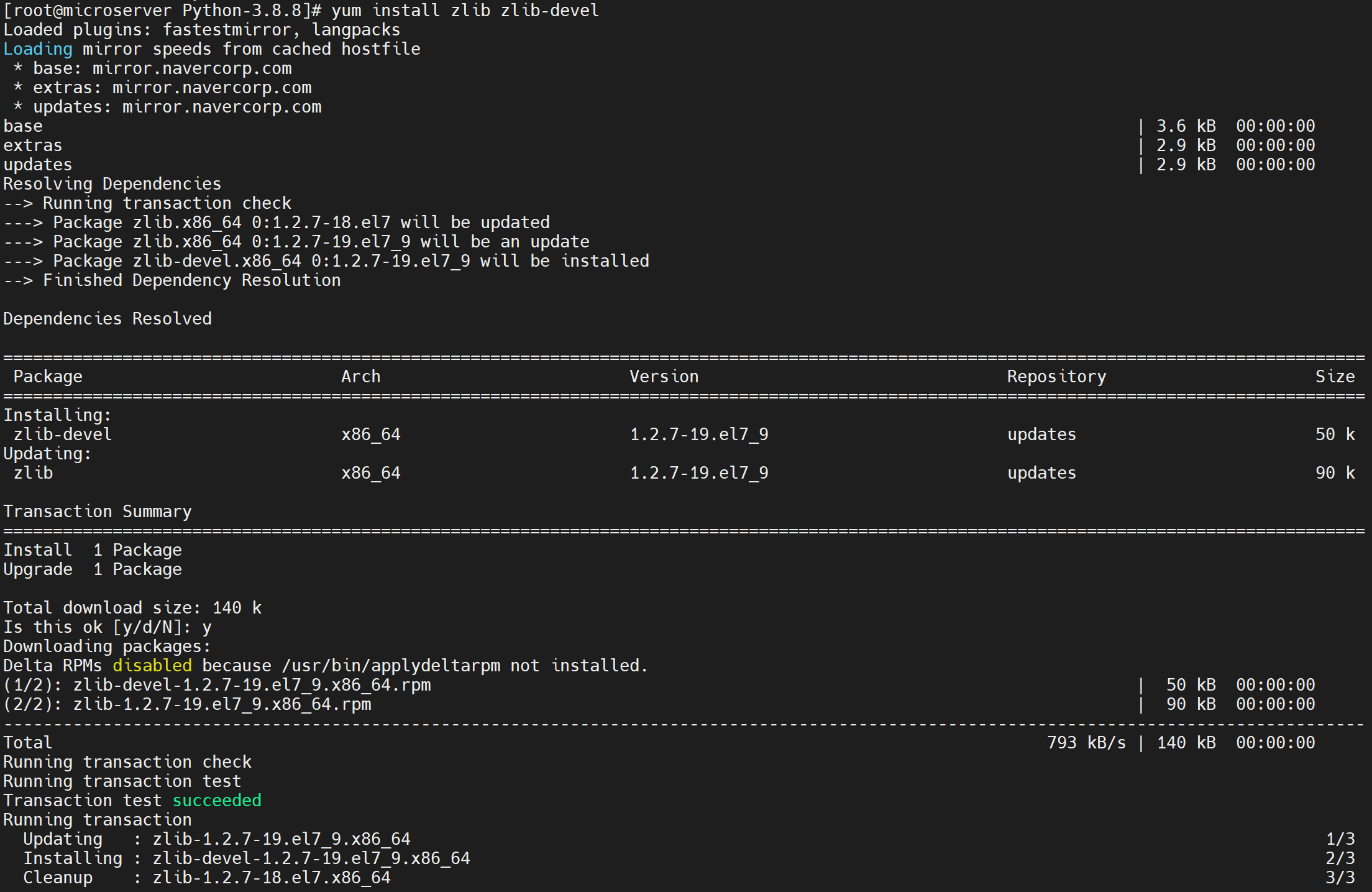 yum install -y zlib zlib-devel