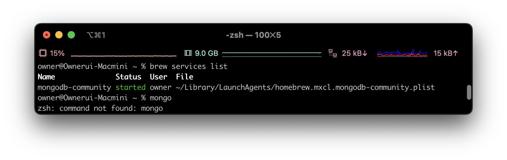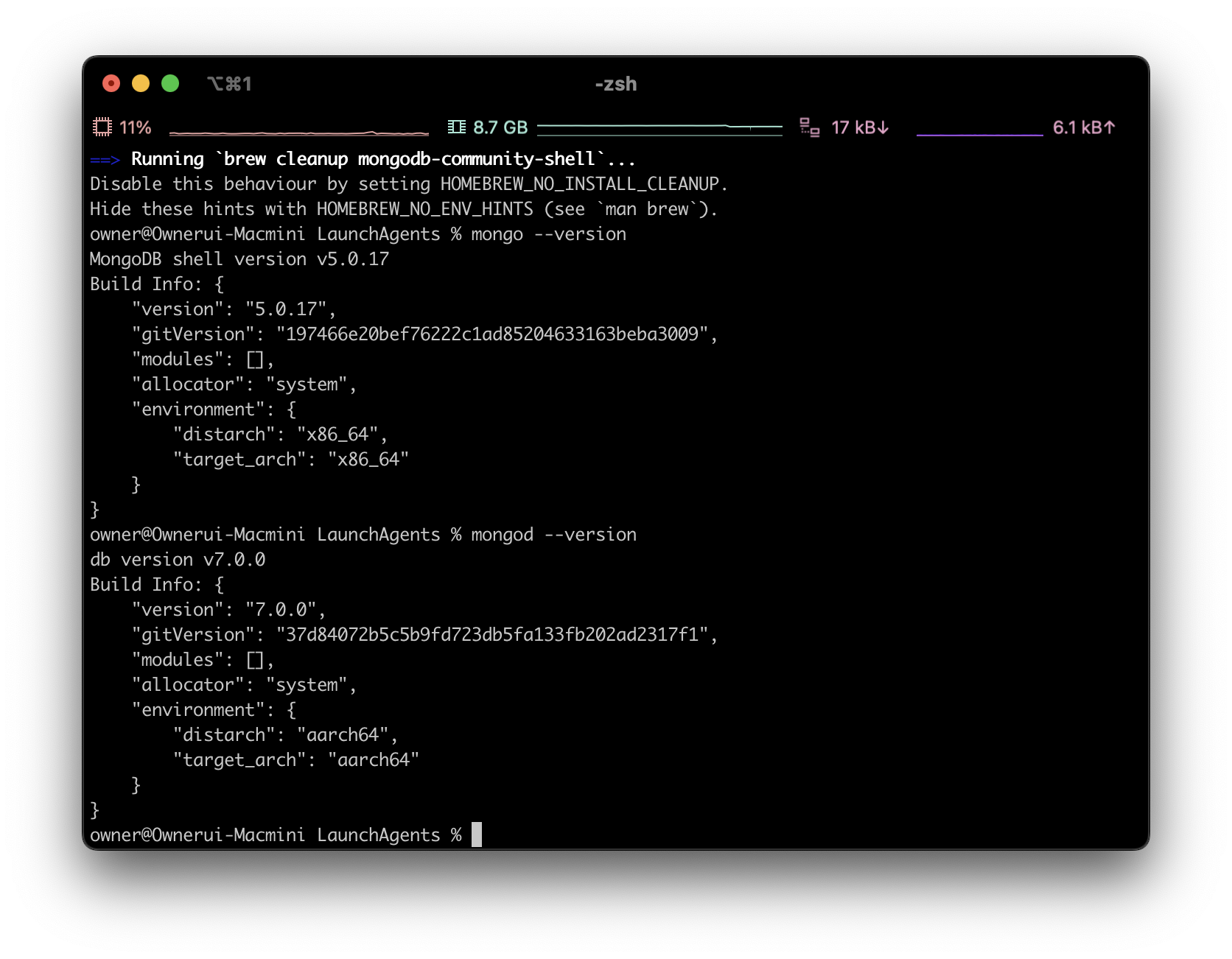 owner@Ownerui-Macmini LaunchAgents % mongo --version